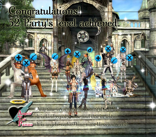 画像は去年のことになっちゃいますが、我が天使たちのお茶会党がついに党レベル52になったので、その記念に撮ったものです^^