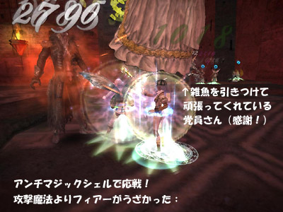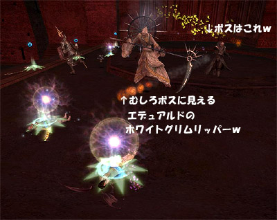 そんなこんなで、その後は速報記事にも書いたように、全然出てこないGアバランチェレブナントにイラカリして投げやり気味にゴーストニュークリアをリリーンハートにつっこんだら、いきなり出てきてマス男とエデュが即焦げし、ポーション連打しながらスカ子だけで逃げ回りつつ、マイクで救援を募集→皆様のご協力で退治完了!のはこびでした。(我ながら情けない^^;)
