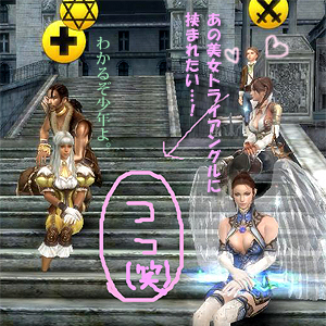 リュミエール:wiz男。21歳。ベスパニョーラの武器商人の三男。イリフィカーデ家のジュリアスたちの従兄弟にあたる。母に辛く当たる父への反抗からか、極度のフェミニストに。(兼、好色家w)母似の美しい容姿も手伝って、大変モテる。戦争や武器は好きでなく、毎日の華やかな生活にも嫌気が差し始めている。