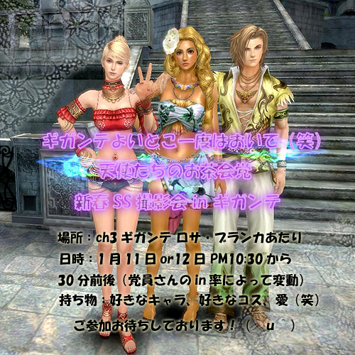 「新春SS撮影会 in ギガンテ」やりたいと思います^^